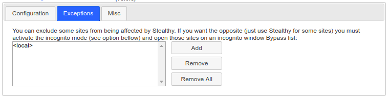 - On the "Misc" tab, you'll find the "Incognito Only" option. If selected, Stealthy will
